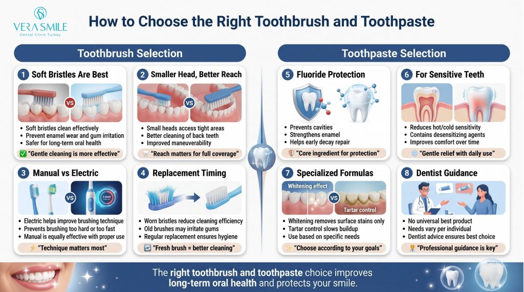Whether you use a manual or electric toothbrush, the most important factor is the bristle type. Dentists consistently recommend soft-bristled toothbrushes, as medium or hard bristles can wear down enamel and irritate the gums over time, even when used with good intentions.