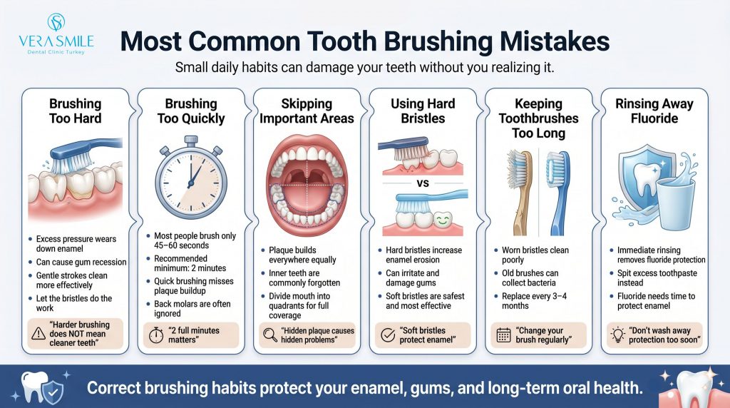 Even people who brush consistently can unknowingly undermine their efforts with common habits that reduce effectiveness or cause damage. Here are the mistakes to watch for: